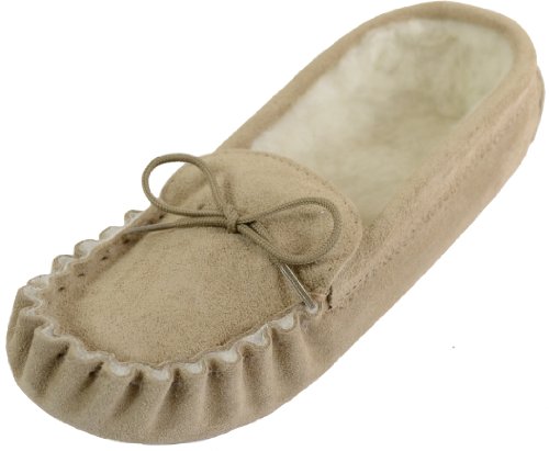 Best Seller! Mens Beige / Camel Suede Moccasin Slippers with Wool Lining and Suede Sole. Made in UK. Size 9 Review