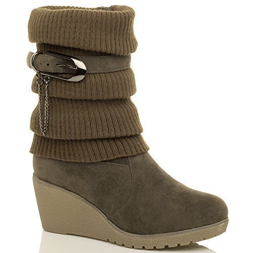 Ajvani offer WOMENS LADIES MID HEEL WEDGE KNITTED COLLAR SLOUCH BUCKLE ANKLE BOOTS SIZE 7 40. This awesome product currently limited units, you can buy it now for £20.99, You save -